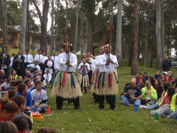 One thing that was absolutely a once-in-a-lifetime experience was that we celebrated mass every night…but in a different language, celebrated by a different culture. My favorite were the peoples of the tropical islands. They swayed and their men sang a yelling-song as they brought the scripture forward. They decorated the priests with plants and flowers; sang and danced and offered flowers, plants, hats, and baskets at the offertory. Together we sang the loudest “Our Father” I’ve ever heard…in a native island tongue.