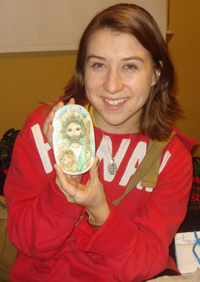 Also, my cousin came over and painted her first watercolor ever–a picture of Joseph Ratzinger at seven. It’s SO GOOD.