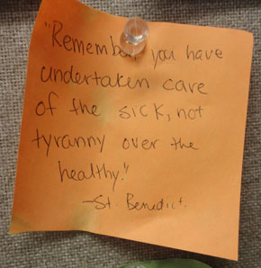 2. St. Benedict, “Remember, you have undertaken care of the sick…not tyranny over the healthy.”
