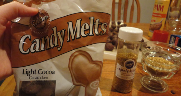 Coat in melted chocolate, love and golden sprinkles.