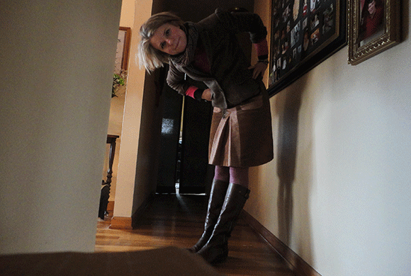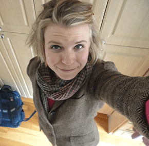 Therefore: pink tights (striped! I’ve had these since I was a kiddo. They’re kind of small…but they’re warm, guys!), brown boots, a brown corduroy skirt, a brown oxford shirt, a hot pink sweater, my brown herringbone lady-jacket, and a pink-and-grey scarf.
