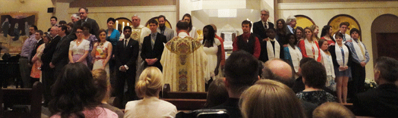 Then, a group of people come to the front to be confirmed. One by one the priest anoints them with holy oil. One by one they say the name of the saint they have chosen, and some of them pick the saints I know and love and then I inwardly squeal because I’m like, “You have no idea what you’re getting yourself into…but it’s going to be more beautiful than you can imagine.”