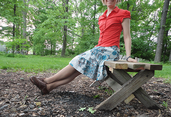 That skirt has a story. One time I left my work in a wool skirt and a sweater because my work is cold. I stepped outside and realized: it was summer time. And I was about to go dancing. And I was wearing a wool skirt. So I went shopping. (Secondhand, duh). Then: new skirt. I like that it matches with lots of colors like orange and blue and brown. Three cheers for versatile clothes!