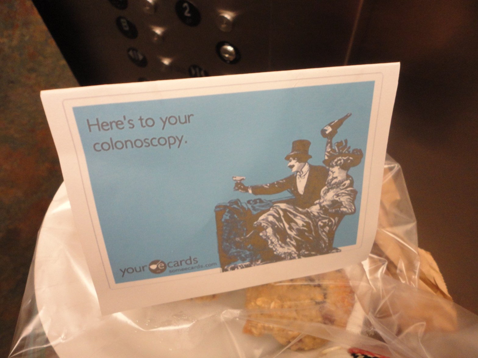 Soooo one of my super awesome coworkers is going in for the party that is a medical procedure. Woo hoo. I made said-coworker this card, utilizing e-card magic and my own sense of humor. I expect a call from Hallmark any day now.