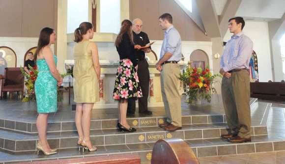But, on Saturday, I stood in her wedding. I curled her hair, I walked in front of her, I inwardly squealed when they exchanged vows and pushed the rings down their fingers "in the name of the Father and the Son and the Holy Spirit," I extended my hand when the priest asked us to pray for the couple.