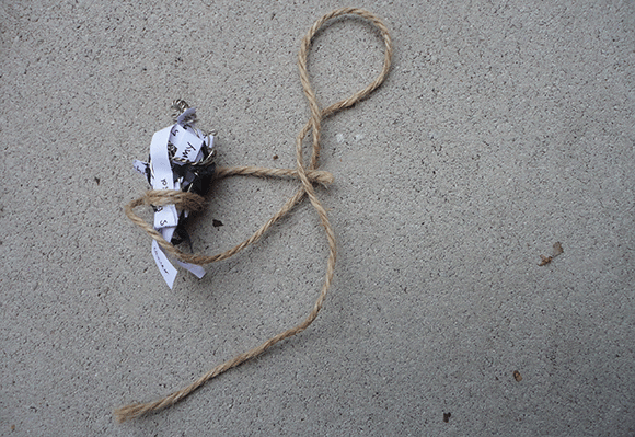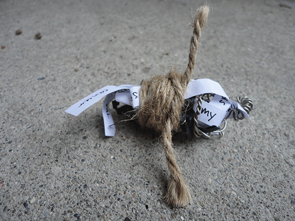 The twine represents the tension I carry in my shoulders, I guess. It represents my shortness of breath because I’m over here holding these worries and fears inside, carrying them around.