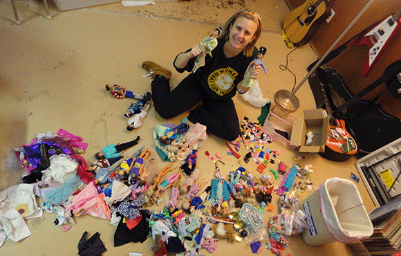 Christine cleaning out the basement. This is more of the great Barbie sort. This picture, Christine and Barbies and the basement pretty much sums up my childhood.