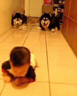 I cannot stop watching this leetle video of two DOGS MOCKING A BABY: