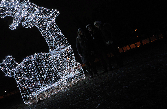 On Friday I went to a Christmas lights show with Christine and her friend Roxy. That’s us in the hats, washed out by the bright lights of our reindeer friend, breaking rules of staying on the path because we didn’t know the rules existed.