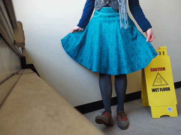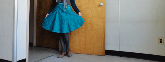 This is it. This is the corduroy skirt that took a bit o’ emotional energy and real-life energy with it. Vintage pattern missing from the envelope, me making up a pocket pattern, me accidentally cutting something improperly with the fabric-pattern facing the wrong way…whew. No one said it was easy.