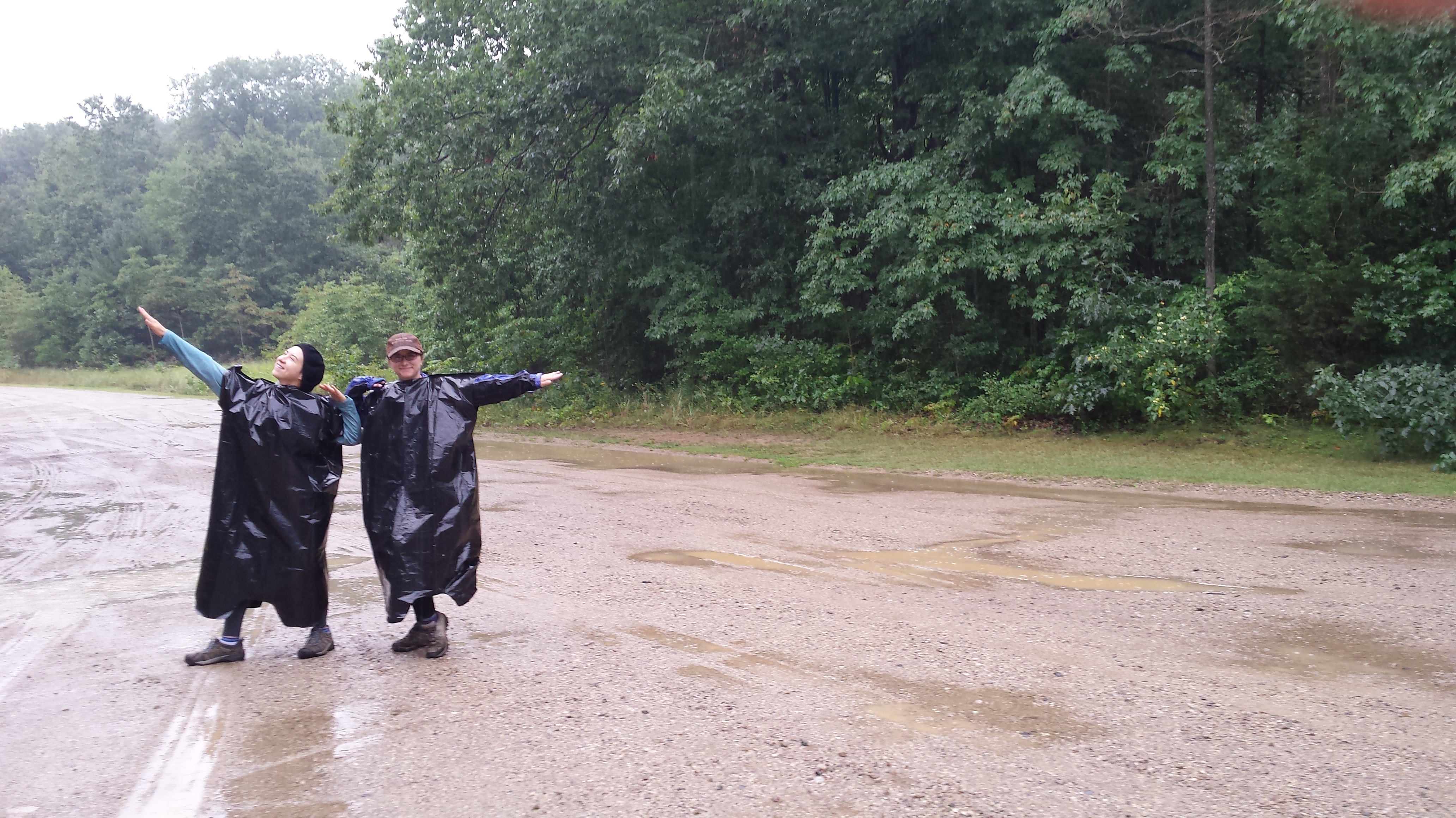We decided this was a good idea, and stopped by the campground hosts for some coffee (and juice) (I don’t drink coffee) and they were kind enough to give us some trash bags to use as ponchos.