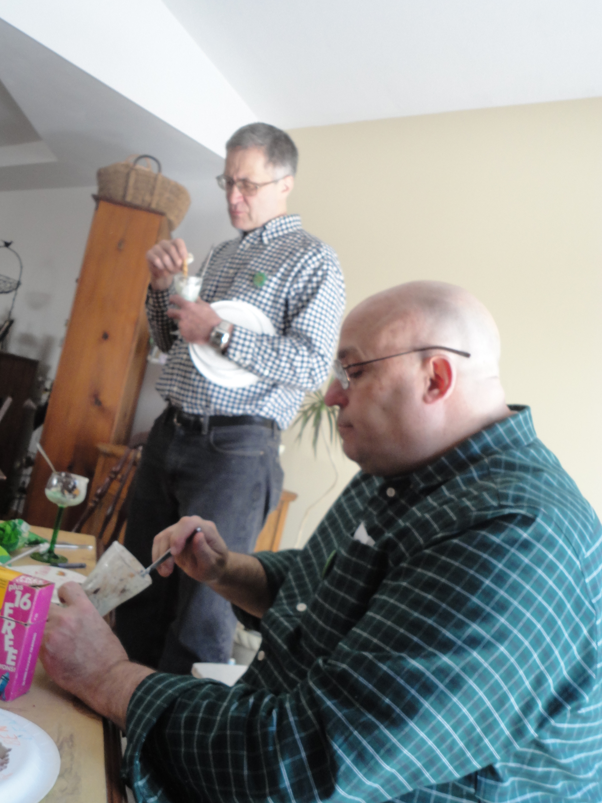 My uncle Bill and my father. My father is wearing green. Clara pointed out that the ONLY green Uncle Bill is wearing is the button-hole detailing on his shirt-pocket. Shameful. And he’s legit Irish and everything.