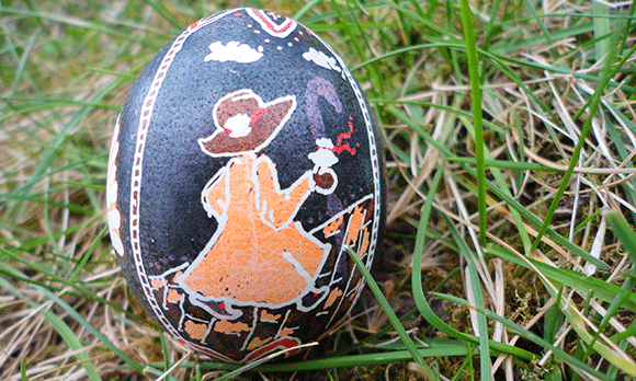 Second side: a peregrino, or pilgrim. Things of ntoe: the wide-brimmed hat, walking stick, and shell which calls him out as “pilgrim.”
